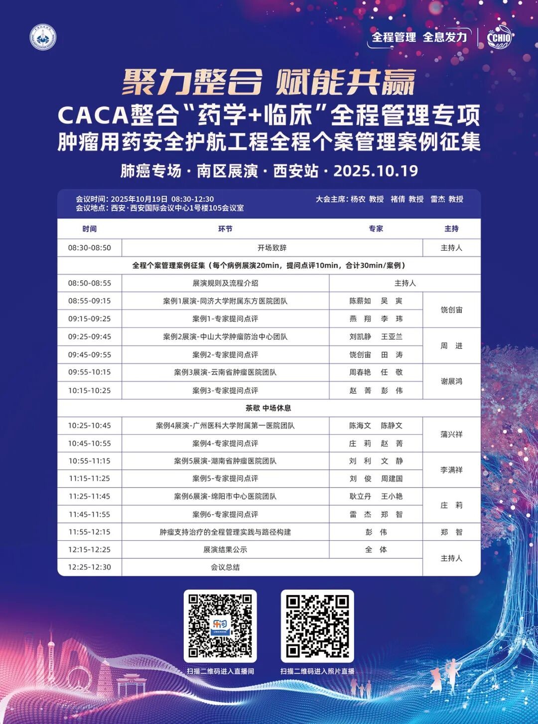 因此,中国抗癌协会个案管理专业委员会推出 CACA整合“药学+临床”全程管理专项 肿瘤用药安全护航工程全程个案管理案例征集 线下会议,计划于2025年10月19日在西安举办。