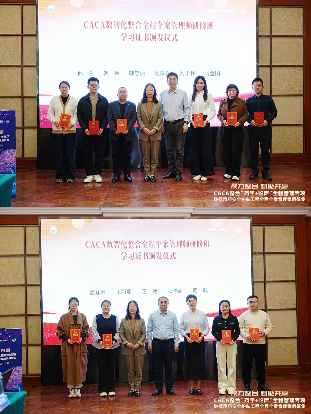 会议现场,在包头市肿瘤医院谭亚琴教授的主持下,刘彩霞教授和温珍平教授还为来自全国各地的全程个案管理师们颁发了CACA个案管理证书。该认证不仅是对专业能力的权威认可,更体现推动肿瘤全程管理标准化、专业化、规范化发展的战略导向。