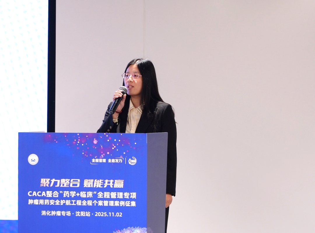 2025年11月2日,“聚力整合,赋能共赢——CACA整合‘药学+临床’全程管理专项——肿瘤用药安全护航工程全程个案管理案例征集·消化肿瘤专场”在沈阳成功举办。本次会议聚焦消化肿瘤全程个案管理,依托案例征集与展演,系统梳理并推广“药学+临床”整合模式的标准化路径,为全面提升肿瘤患者生存质量与就医体验注入新动能。