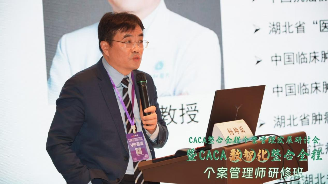 中国抗癌协会个案管理专委会副主任委员、华中科技大学协和医院肿瘤中心主任杨坤禹教授代表专委会致辞,他指出,近年来,随着我国人口老龄化的进程,恶性肿瘤的防控形势十分严峻。由于肿瘤治疗的长期性和治疗过程的复杂性,肿瘤患者的个性化照护需求日益增长。而个案管理师以患者为中心提供全面、持续的医疗咨询和照护服务,满足患者个体化医疗和非医疗需求,堪称肿瘤患者的“大管家”。CACA数智化整合全程个案管理师研修班秉承着“以患者为中心,以疾病为链条”的核心理念,借助各省市同道的力量,我们可以更好地整合医疗资源,深入地推进健康中国建设,提升各级医疗机构的服务水平,对于建设中国特色优质高效的医疗卫生服务体系,保障人民群众的健康权益具有重要的意义。