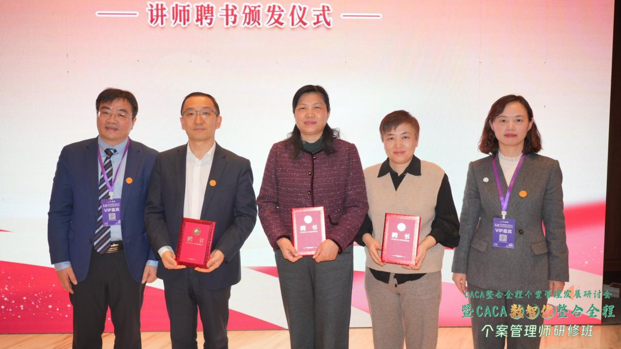 讲师聘书颁发和学员证书颁发环节,由山东第一医科大学附属肿瘤医院护理部主任孟英涛教授和山东第一医科大学附属肿瘤医院个案管理专科组组长杨静教授主持。