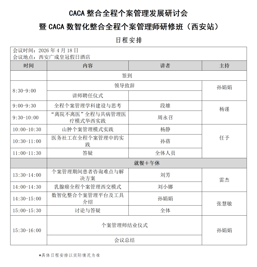 步入2026年,我们满怀激情与期待,继续推出培训工作,旨在进一步推动“以人体健康为中心,以疾病管理为链条”的全程个案管理模式在全国范围内的普及与深化,为构建优质高效的“整合型医疗卫生服务体系”贡献力量。研修班系列活动由中国抗癌协会个案管理专业委员会精心策划,现诚邀全国各医疗卫生健康领域的专家、学者共襄盛举,通过深入探索与应用实践,共同开启个案管理领域的新篇章。