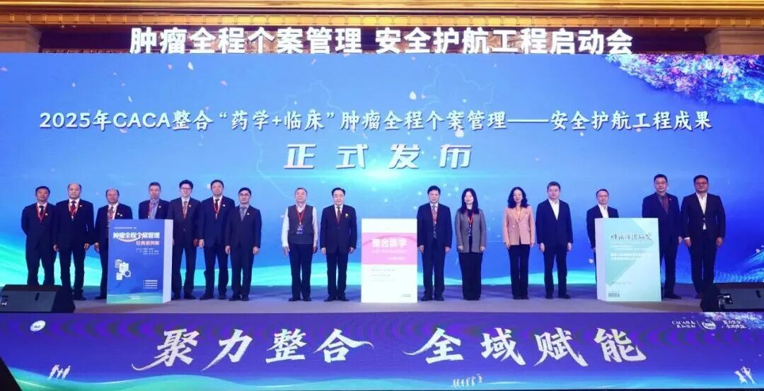 随后,樊代明院士、徐兵河院士、黄晓军院士、王振宁教授、吴炅教授、吴小华教授、董梅教授、陈凛教授、刘继勇教授、张国君教授、杨农教授、赵勇秘书长,恒瑞医药冯佶女士、朱国新先生、尹航先生、韩曙先生,与全体嘉宾共同发布并见证2025年度CACA整合“药学+临床”肿瘤全程管理项目成果。