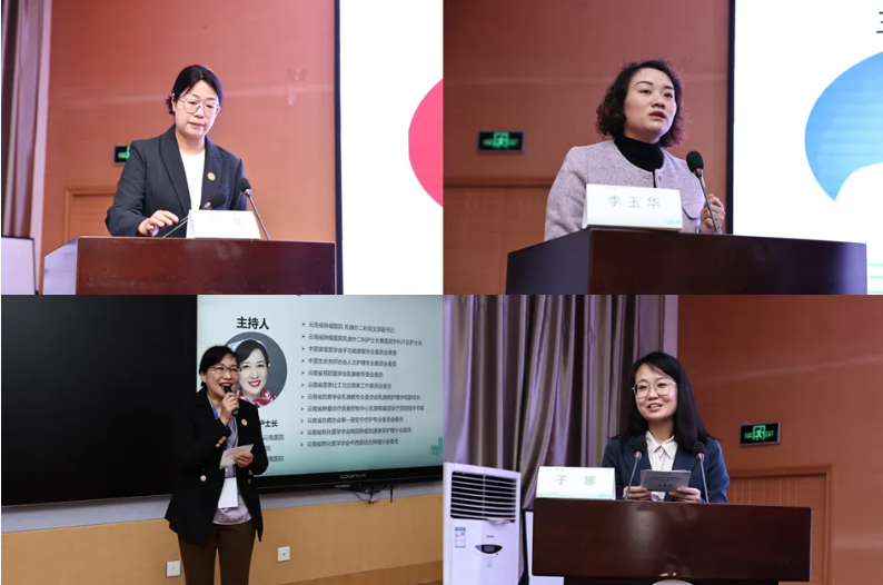 云南省肿瘤医院高伟片区护士长、李玉华护士长、李莉片区护士长、中国抗癌协会个案管理专委会于娜秘书依次主持会议。