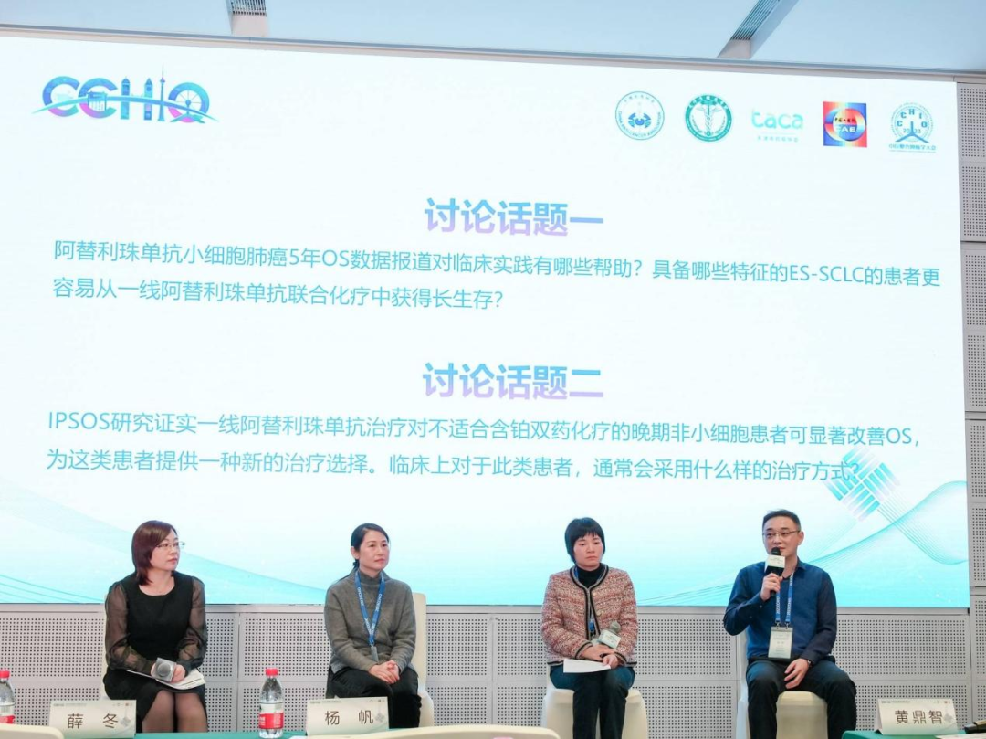 上海交通大学医学院附属新华医院韩锋锋教授、南通大学附属医院刘军教授、浙江省肿瘤医院金莹教授对“阿替利珠单抗小细胞肺癌5年OS数据报道对临床实践有哪些帮助?”“具备哪些特征的广泛期小细胞肺癌的患者更容易从一线阿替利珠单抗联合化疗中获得长生存?”“临床上对于不适合含铂双药化疗的晚期非小细胞患者,通常会采用什么样的治疗方式?”这些问题展开了激烈讨论。本环节由中国医学科学院肿瘤医院刘雨桃教授主持。